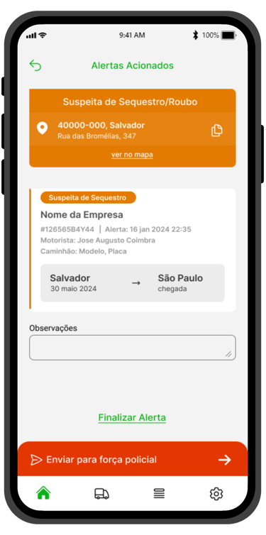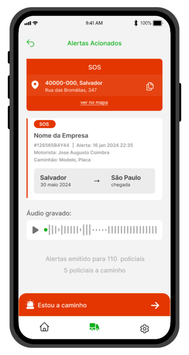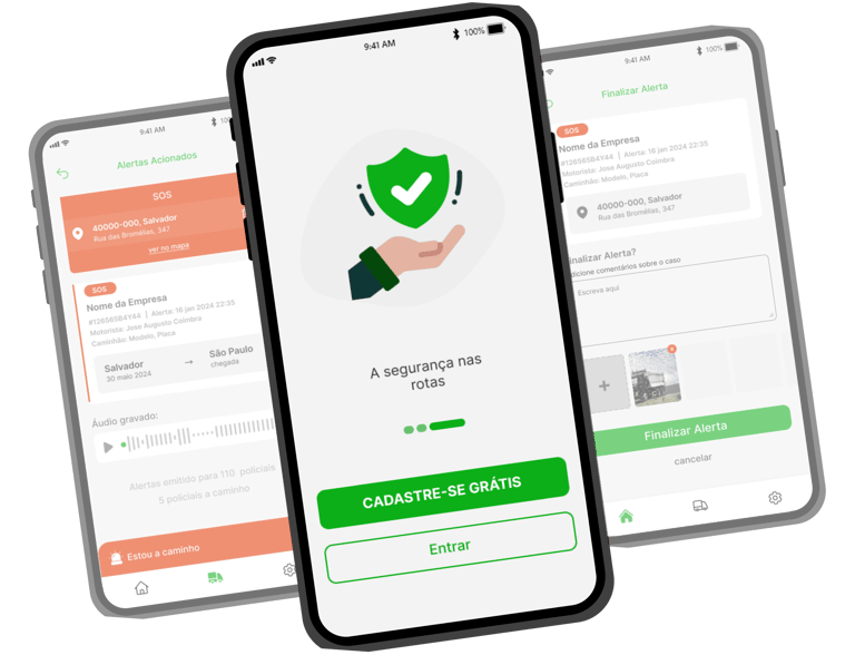 Somo a integração perfeita entre transportadoras, caminhoneiros e forças policiais, tudo ao alcance dos seus dedos. Garantir entregas pontuais e proteção das cargas com total confiança do inicio ao fim do trajeto, agora é possível graças ao nosso revolucionário aplicativo e botões de alertas com comunicação direta as forças policiais.